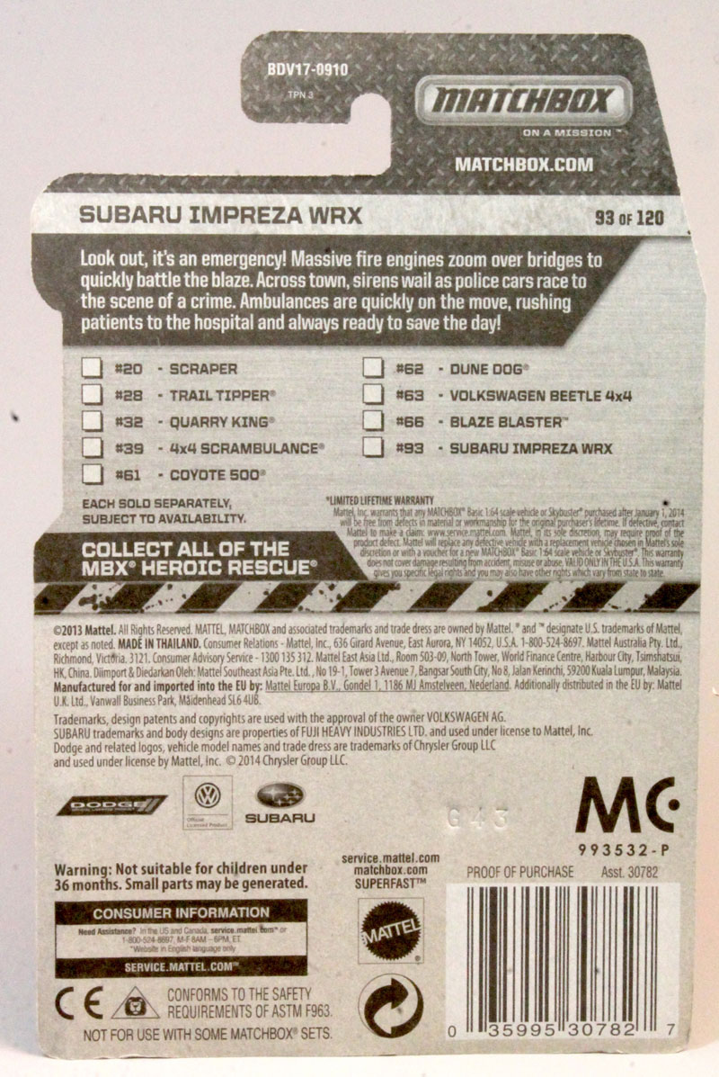 Model Name on the Pkg: Subaru Impreza WRX