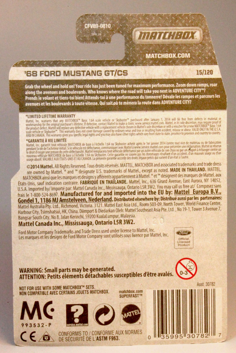 Model Name on the Pkg: '68 Ford Mustang GT/CS