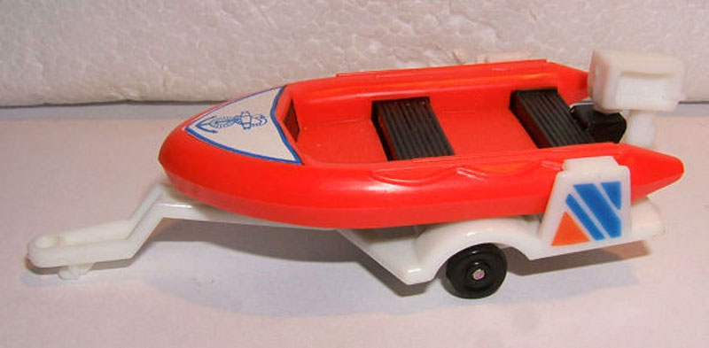 Design: White panel w/ blue anchor (on raft), red & blue str (on trailer)